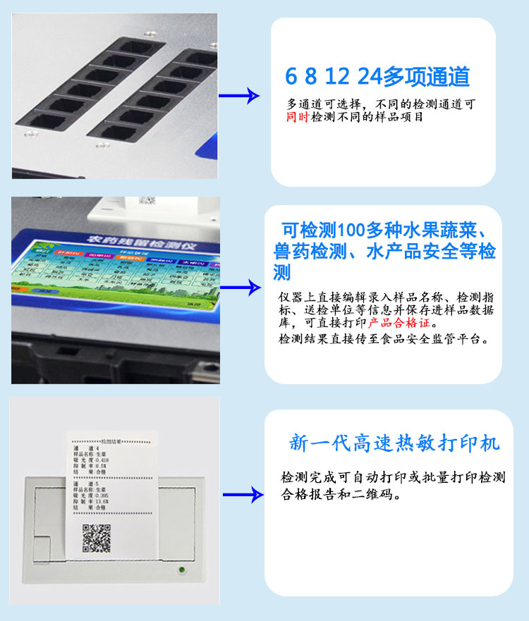 05 :一體化主機:包含食品安全檢測模塊、多通道農藥殘留檢測模塊、膠體金免疫層析檢測模塊。
